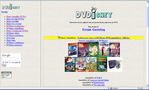DVDisney En side med grundige beskrivelser af alle disney DVD tegnefilm udgivet med dansk tale. Siden indeholder også anmeldelser af filmene, og beskriver de forskellige versioner der findes af filmene. |