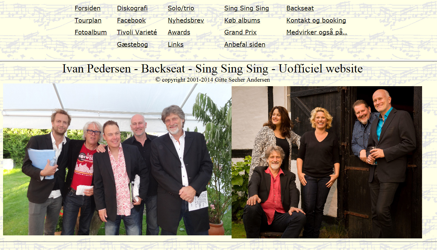 - Backseat - Sing Sing Sing - Uofficiel website En dansk side med alt om den danske sanger og sangskriver Ivan Pedersen og om bandet Backseat samt Sing Sing Sing. |